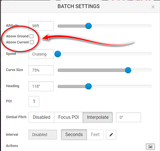 Above current adds the provided altitude to every selected waypoint.