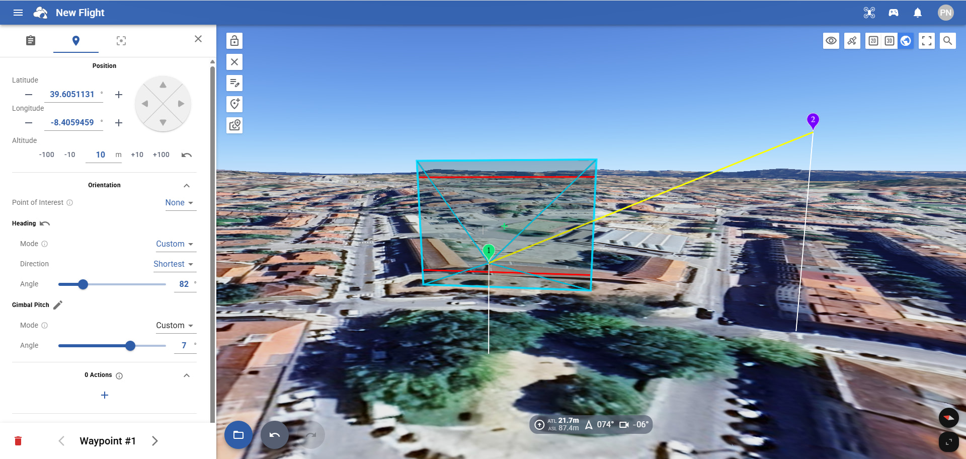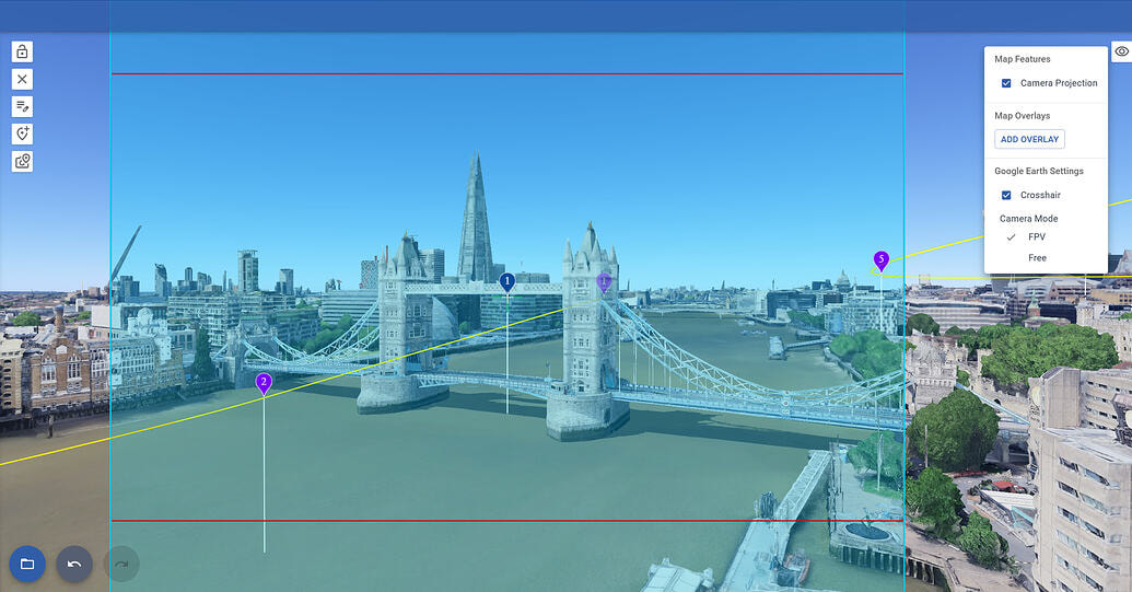 To see the photo you will take at a waypoint, set the Google Earth Camera to FPV mode, then click on the waypoint