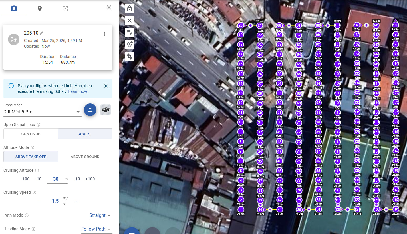 Why not allow me to do this from the start without this 3-4 minute work for export/import/export/import between the mission hub and the litchi app. And why I need to switch back and forth between the Mini 5 Pro and the Mavic 2 Pro.. Just let me do this straight away without all the hassle ![]()
