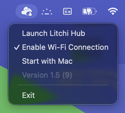 Download, install and start Litchi Hub Bridge. Note that Litchi Hub Bridge is designed to run in the background so there is no user interface for it other than a system tray/menu bar icon.