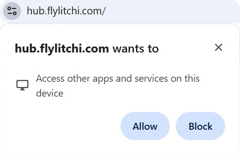 Some browsers (Chrome and others) will ask you to grant the ‘Apps on device’ permission to Litchi Hub. This permission is required for Smart DJI Fly Export so make sure to allow it.