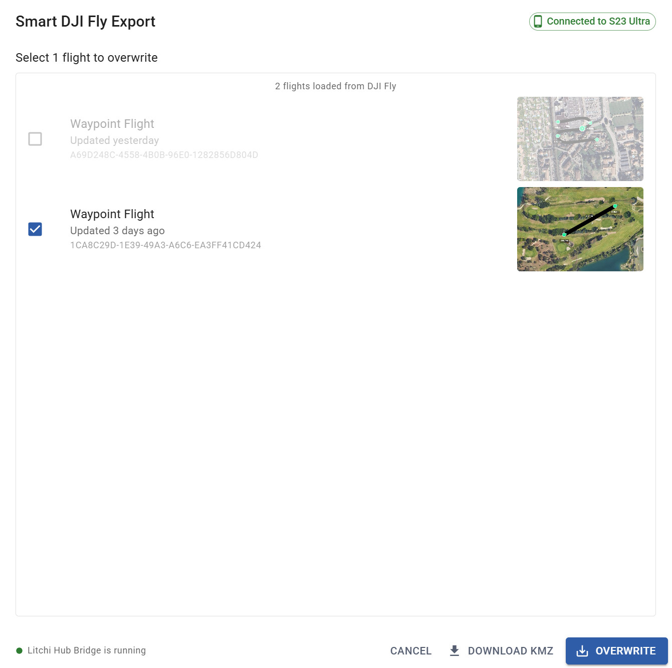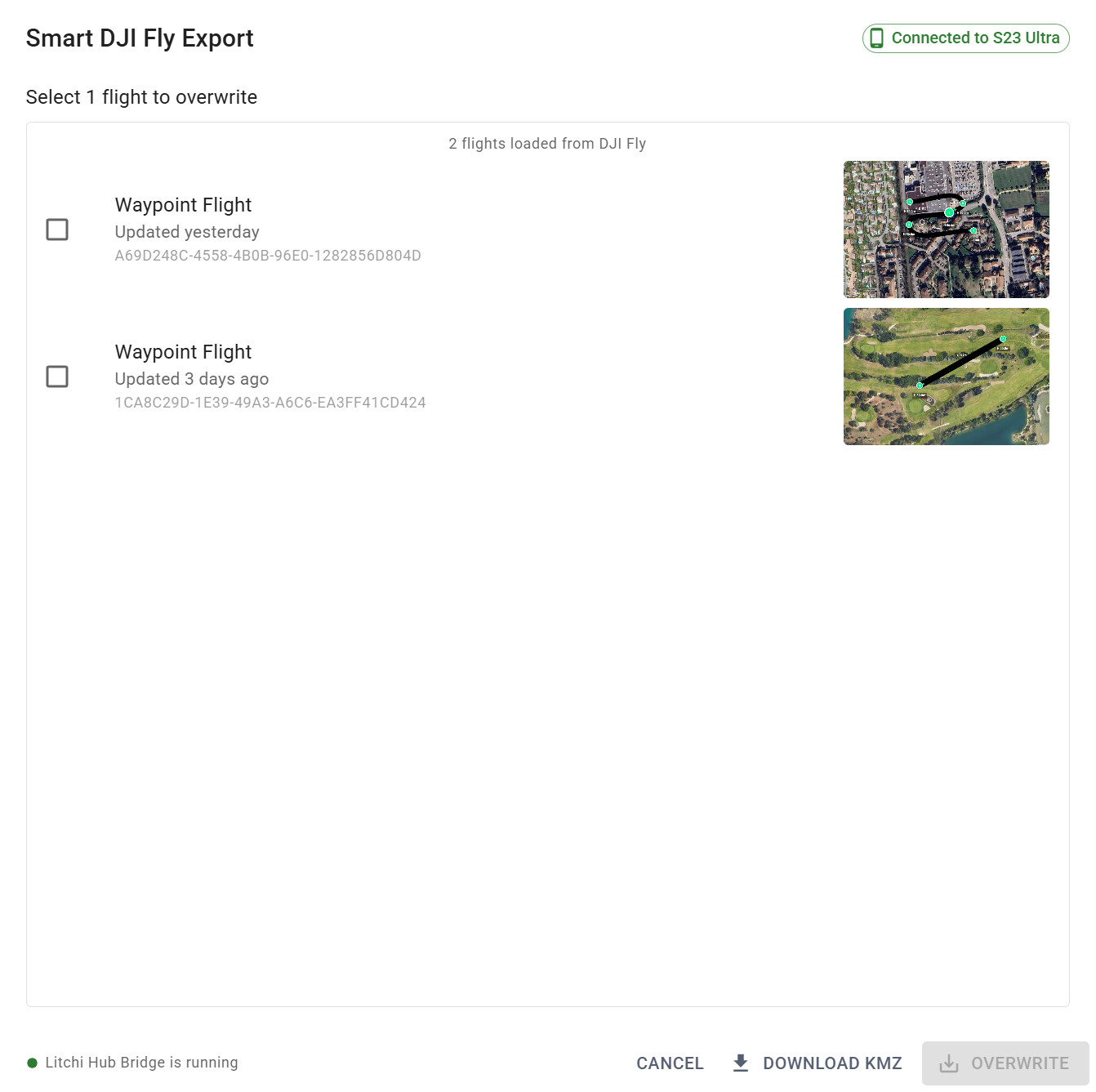 A. Smart Export using Litchi Hub Bridge (recommended)