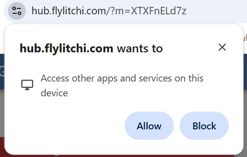 Some browsers (Chrome and others) will ask you to grant the ‘Apps on device’ permission to Litchi Hub. This permission is required for Smart DJI Fly Export so make sure to allow it.