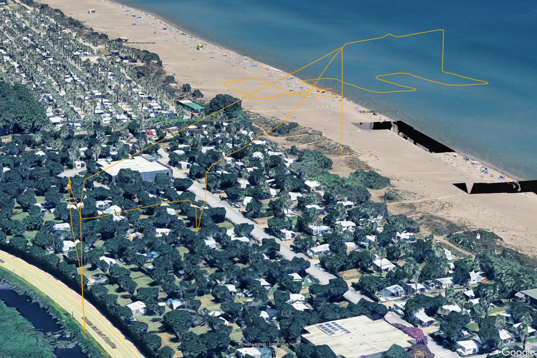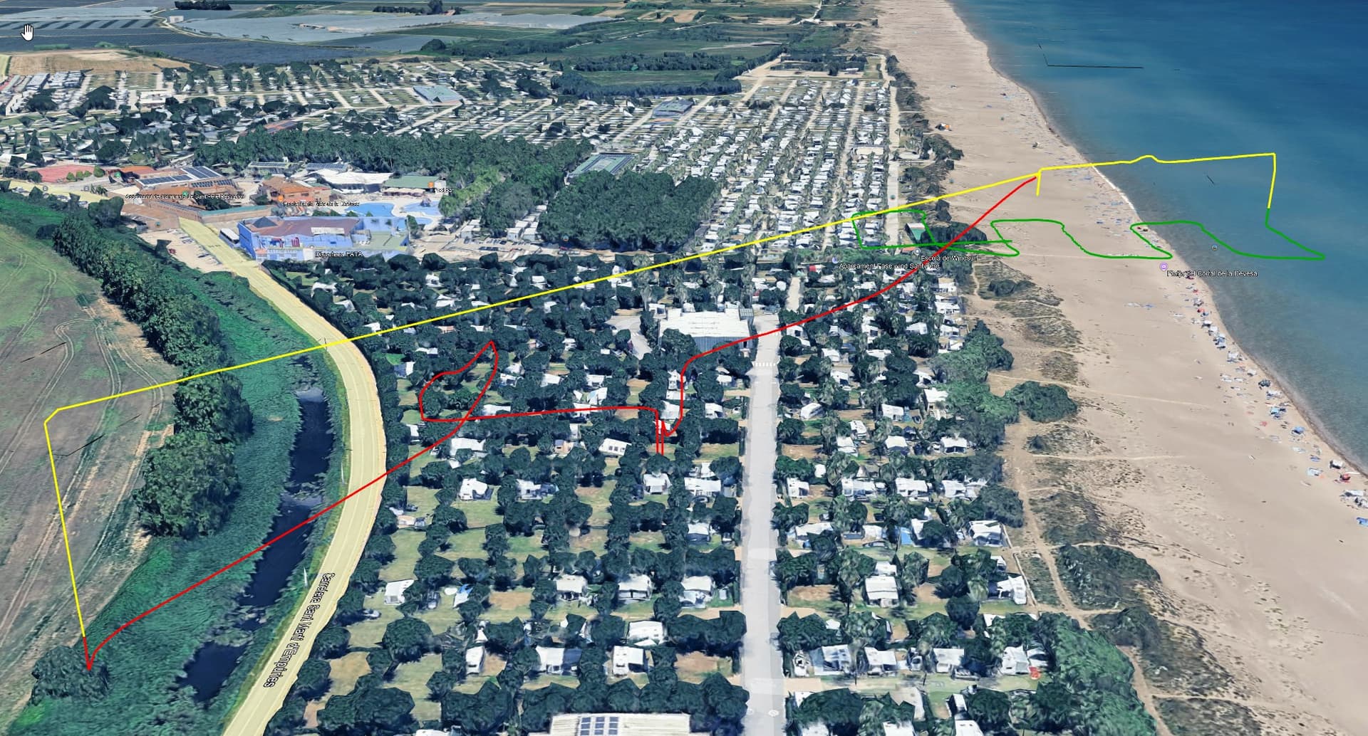 I have done some further analysis of your flight. Here is another snapshot from Google Earth where the flight path is colored according to the flight mode: