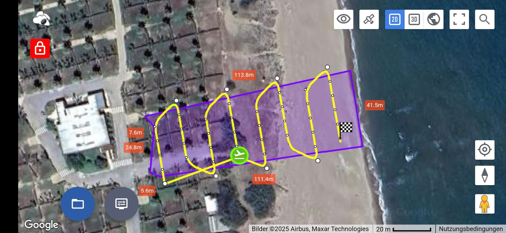 The new area mapping feature is great. I tried it for the first time: the specified area was flown correctly – 27 images from a height of 35 m. At the end of the mission, the drone – DJI Mini 3 Pro – was supposed to fly back to the starting point. However, it flew over the starting point and continued for another 200 m before attempting to land in unknown terrain. Only when I switched to sport mode was it controllable, and when I pressed the RTH button, it returned to the starting point.