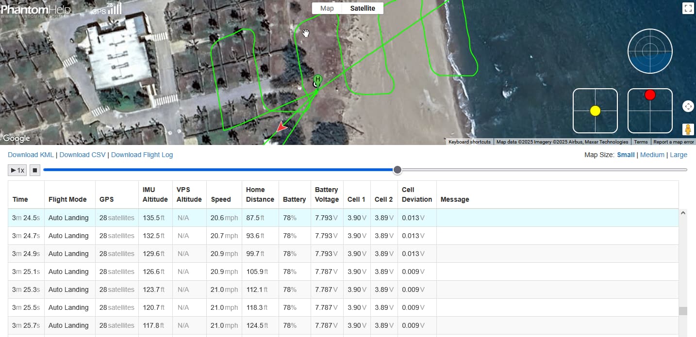 I should also mention that if you want to replay your complete flight using Google Earth Pro, I have a utility that will convert your flight log into a virtual flight. The utility can be found here: