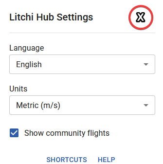 Feature Request: To be consistent with other dialogs in the Hub, the “Litchi Hub Settings” dialog should use an “X” for closing the dialog instead of requiring the user to click outside of the dialog to close it.