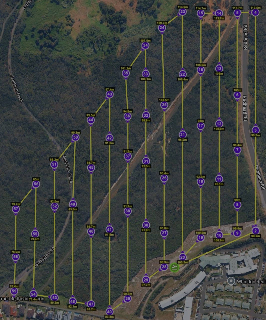 I understand. The need is related to the original post. I’d like to do an ‘Above Ground’ mission but this creates a lot of additional waypoints that then trigger the ‘split the mission’ warning. Waypoint visibility is so I can see how many points are course direction vs course elevation. Example below has 201 waypoints (the larger dots) and the ground does not vary that steeply to warrant it (I think, but still learning). My suggestion was to have a user-selectable tolerance for how frequently to correct elevation.