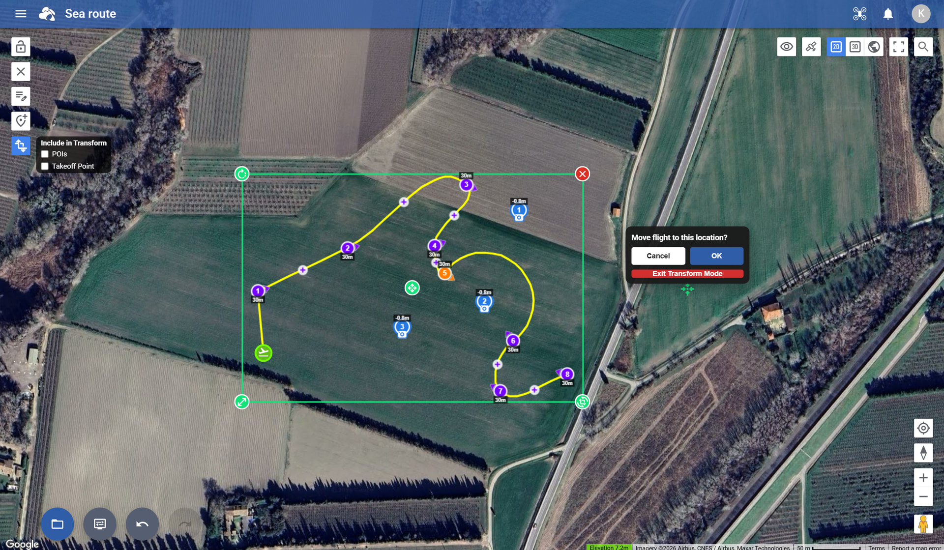 Hover your mouse over the total flight ‘Distance’ to see how many waypoints are required.
