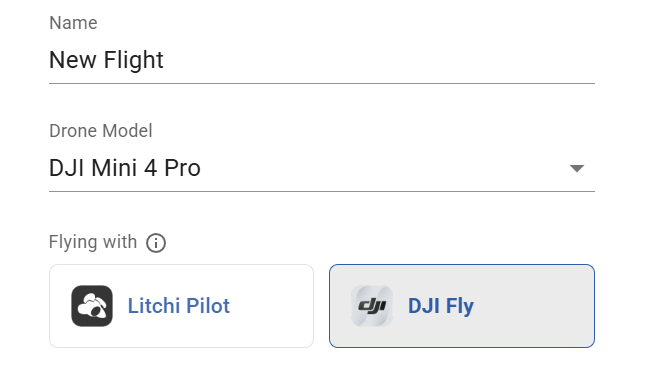 You can now select which app you will fly with when creating a flight. The selected app determines available flight settings, compatibility, export format, and overall flight behavior.