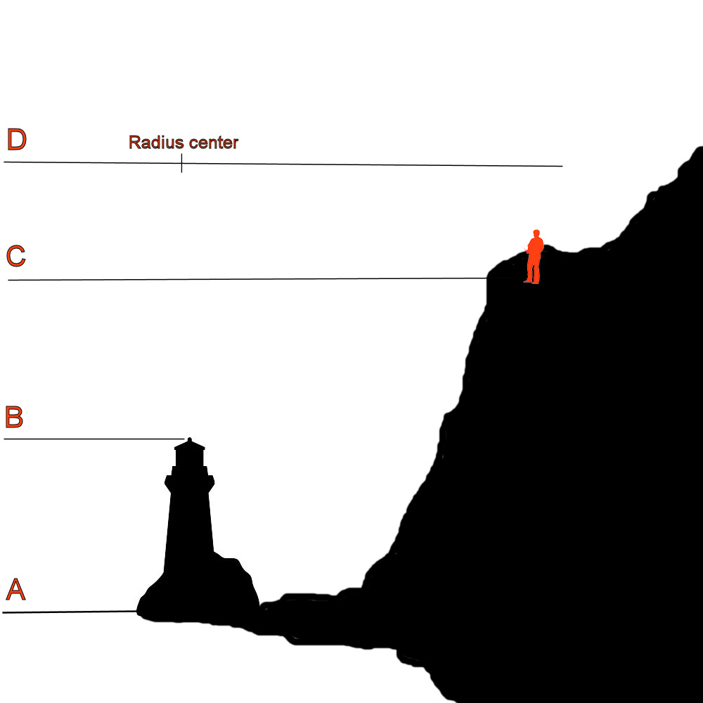 If you havent verified those number, that would be my first suggestion. (Altitude, distance from Lighthouse to safe distance from cliffs, etc).