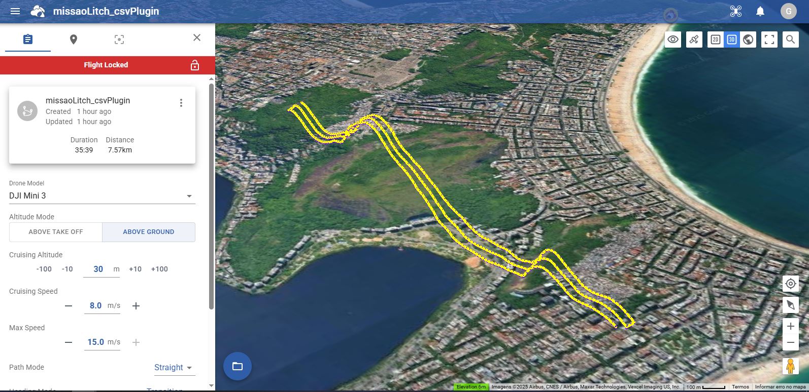 Assim, quando voce importar no Litch, o CSV será convertido a uma missao com altitude/altura AGL.