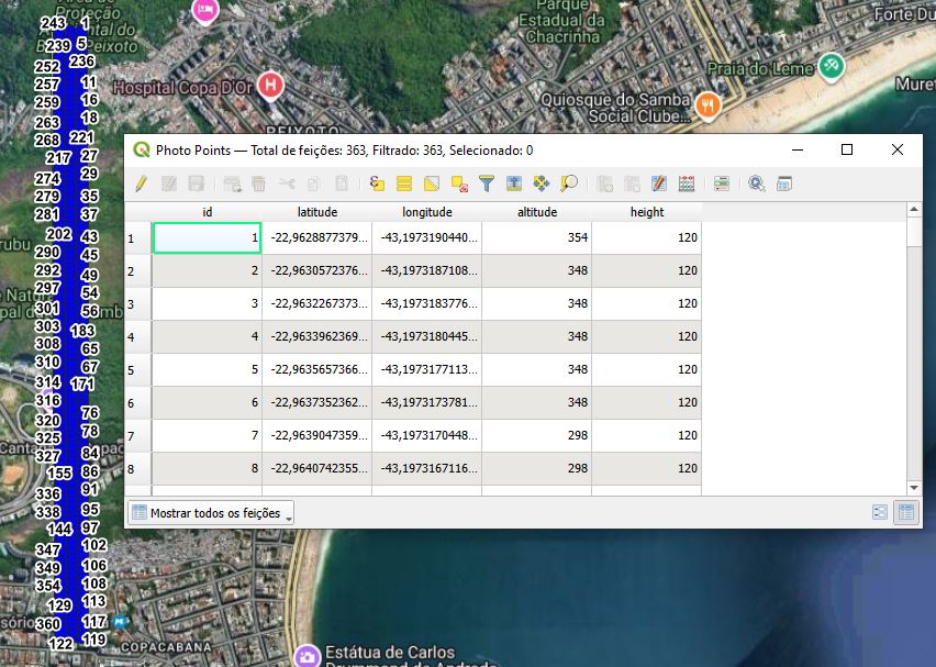 altitude: é a altitude da camada “Photo Points” gerada pelo plugin.