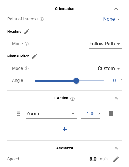 I have started to use litchi hub with my air3s .i can map out missions very well ,the one thing i wish to be able to do is utilise the zoom camera sometimes and i cannot see a way to do this only for the whole mission unless i am missing something .